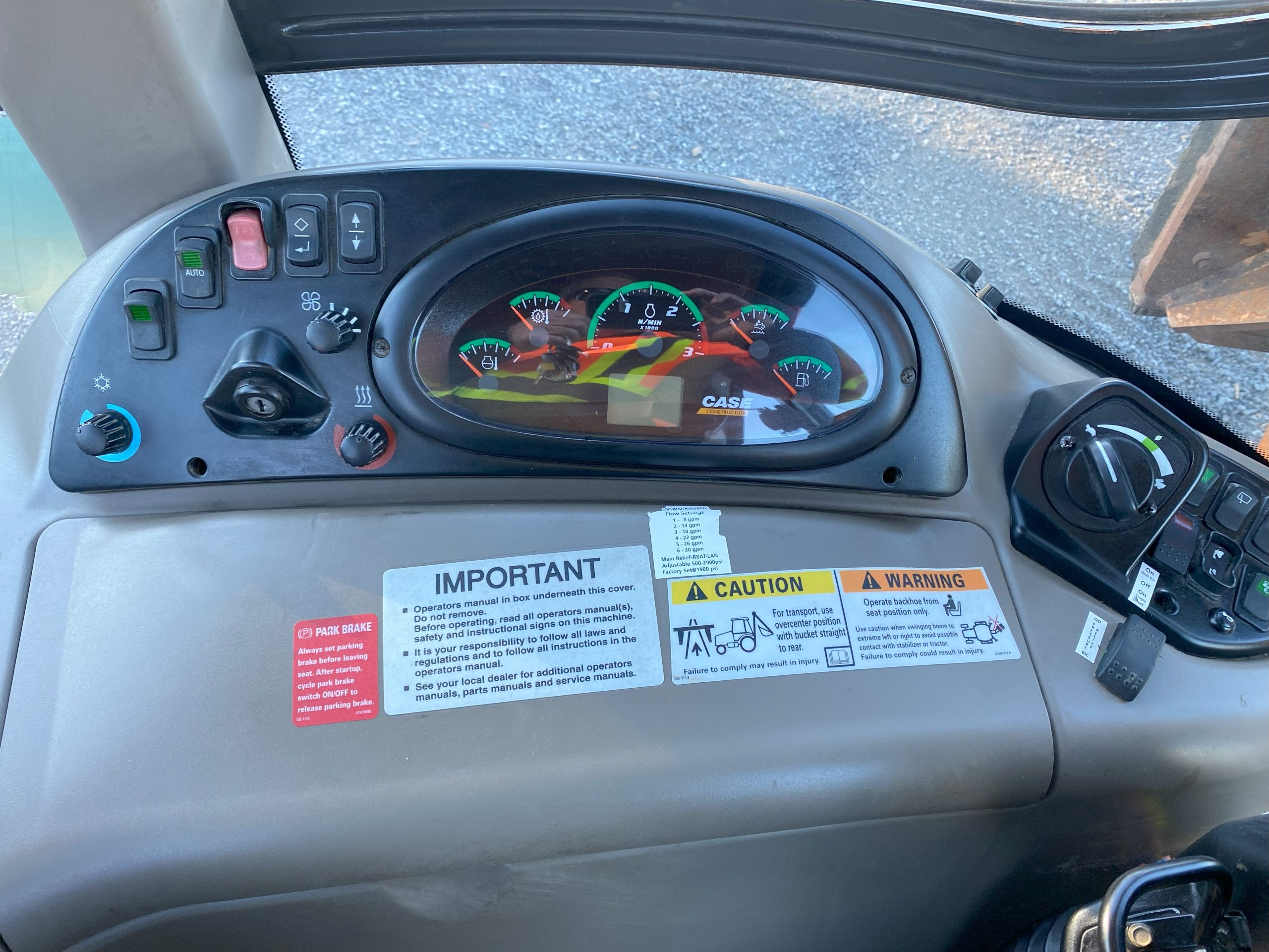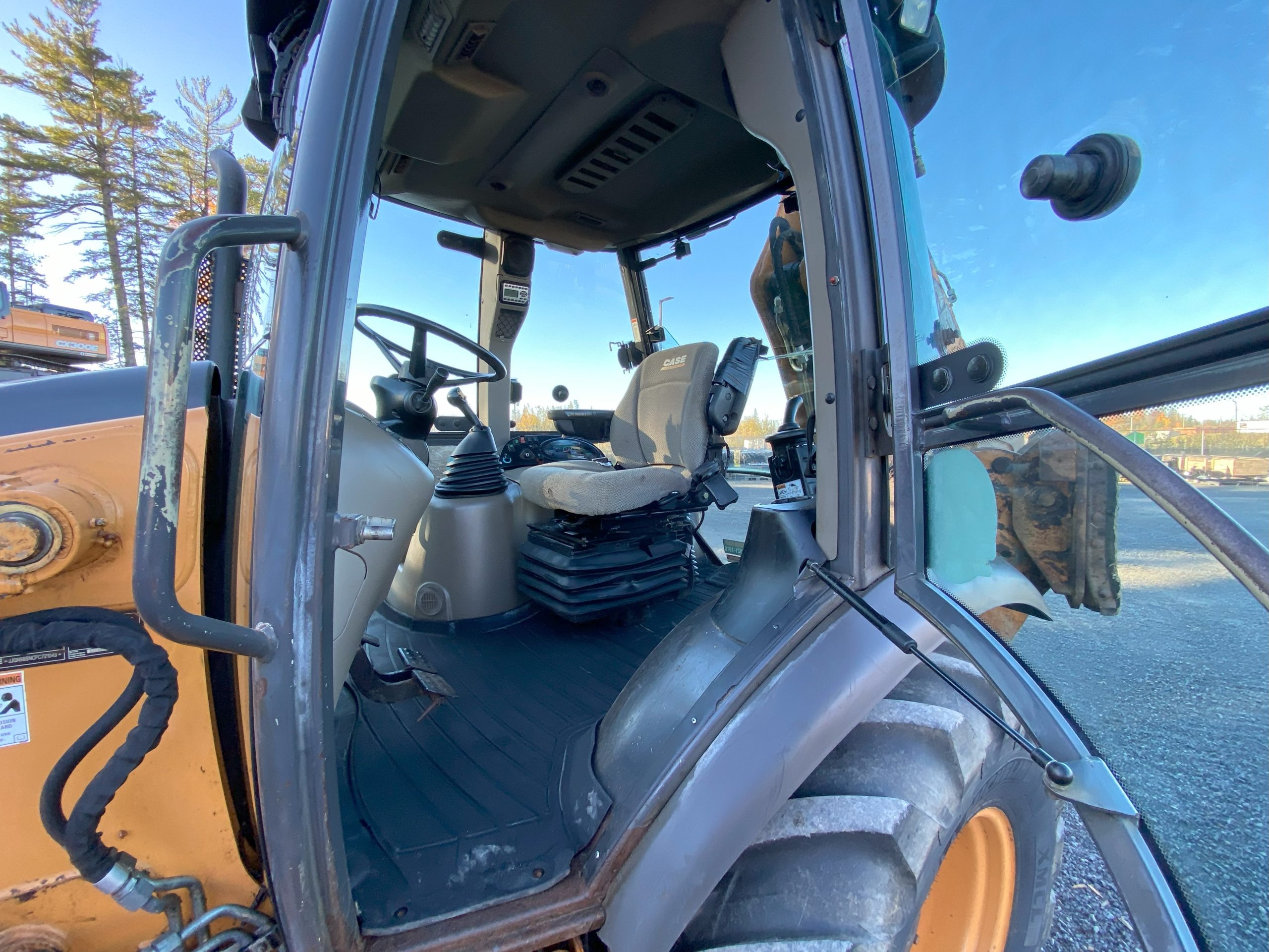 STD TRANSMISSION – 1 DOOR CAB- A/C – RIDE CONTROL – RADIO – WINDSHIELD WASHER – STANDARD INTERIOR – PILOT CONTROLS W/POWER LIFT- INTERIOR MIRROR – BEACON LIGHT – BLOCK HEATER – 1100 LBS COUNTERWEIGHT – GRID HEATER – FRONT BIC FENDERS – FRONT AUX – REAR AUX – CLOTH AIR SEAT (NOT WORKING)
