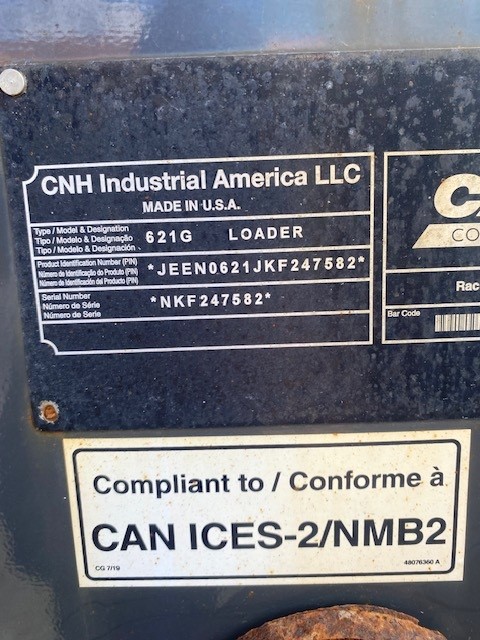 CASE 621G ZBAR T4F 5 SPEED TRANSMISSION TIRES MICHELIN SNOW PLUS QUICK HYDRAULIQUE 13903, 3 YARDS RIDE CONTROL, 3RD FUNCTION ON JOYSTICK, CABIN WITH A/C, HEATER, AM/FM/BLUETOOTH RADIO, HEATED AIR SEAT, BACKUP CAMERA, WINGS WIDE, LED WORK LIGHTS (4 FRONT, 2 REAR), LED BEACON, HEATED EXTERIOR MIRRORS,