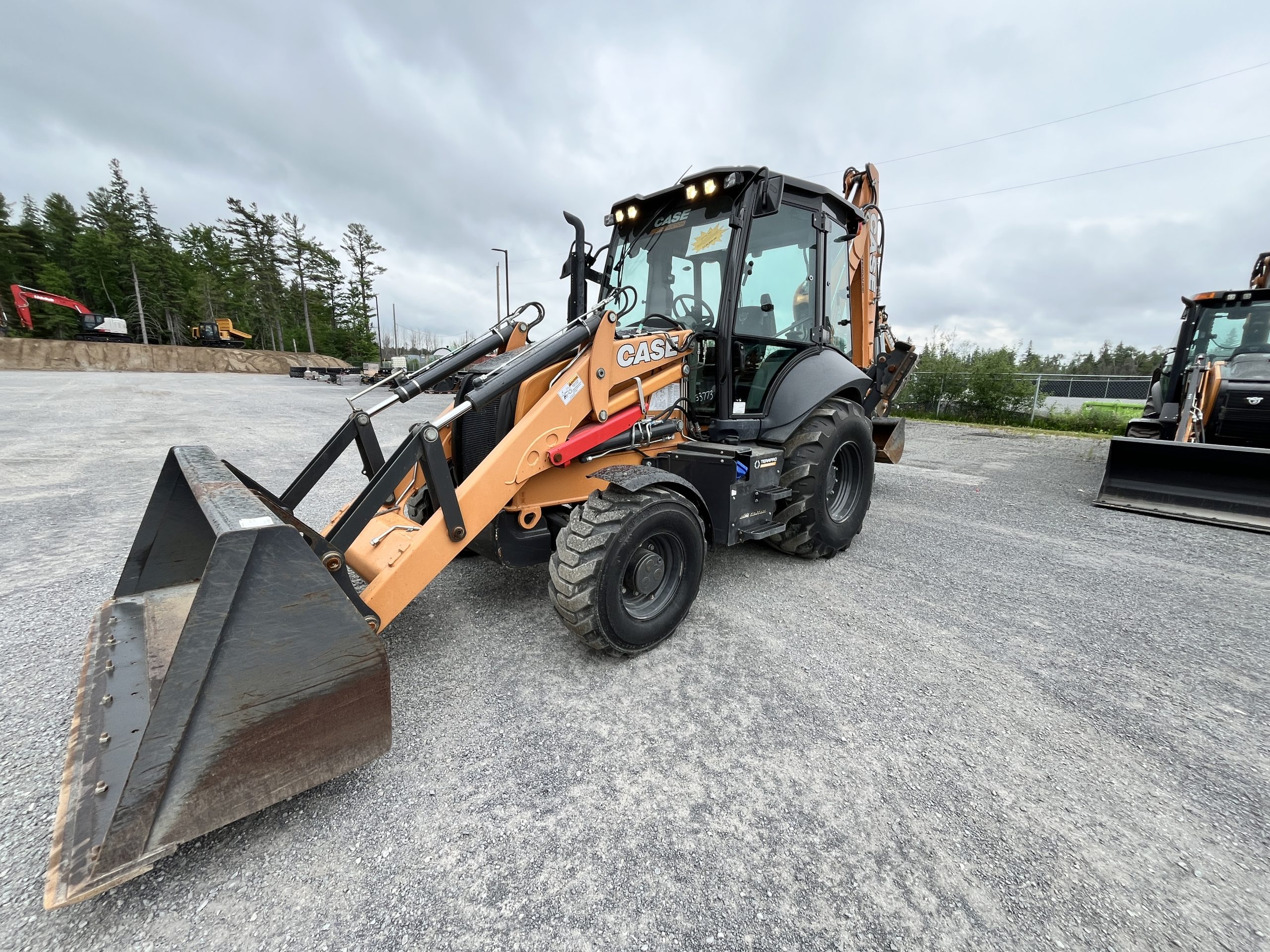 4WD,CAB,HEATER,2 DOORS,OUTSIDE MIRRORS,A/C,BLUETOOTH RADIO,DELUXE HEATED AIR SEAT,STD POWER SHUTTLE SYNCHROMESH TRANSMISSION,14 X 17.5 GALAXY FRONT TIRES,21L X 24,GALAXY REAR TIRES,PILOT CONTROLS,BACKHOE MECHANICAL COUPLER,REVERSIBLE PADS,,LOADER AUX HYD,COMBO REAR AUX HYD,15′ BACKHOE W/EXT,HEAVY FRONT COUNTERWEIGHT 974 LBS,AUTO RIDE CONTROL,TOOL BOX,STD WORKING LIGHTS,DUAL BATTERIES,NO TELEMATICS,NO ROTATING BEACON.