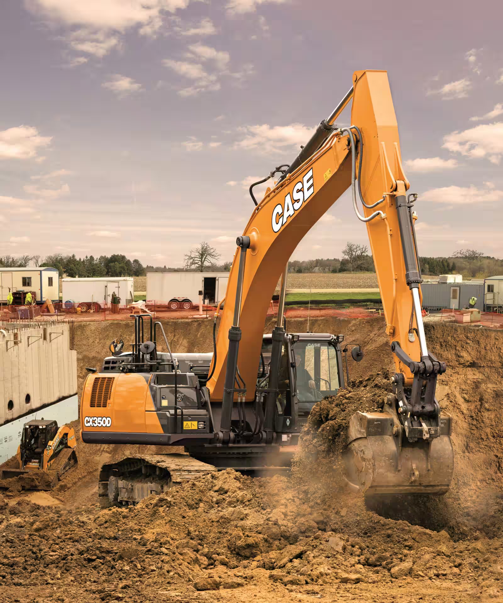 - Gamme complète CASE : excavatrices, chargeuses, mini-chargeuses, bouteurs